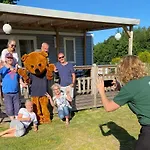 Camping Borken Am See Hotel dispone de 9 habitaciones con zona de estar y climatizador. Los huéspedes también pueden disfrutar de zona de estar y una zona de comedor, junto con sofá.
